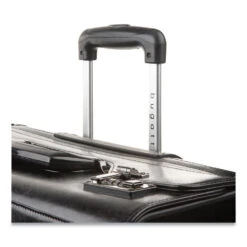 Features a dual zippered front section that provides easy access from the outside or top to files. Holds up to 17.3″ screen laptops (16.5″ wide). Exterior side pockets help organization. The added webbing on flap prolongs the life of the case. Durable, locking telescopic handle. Combination lock.