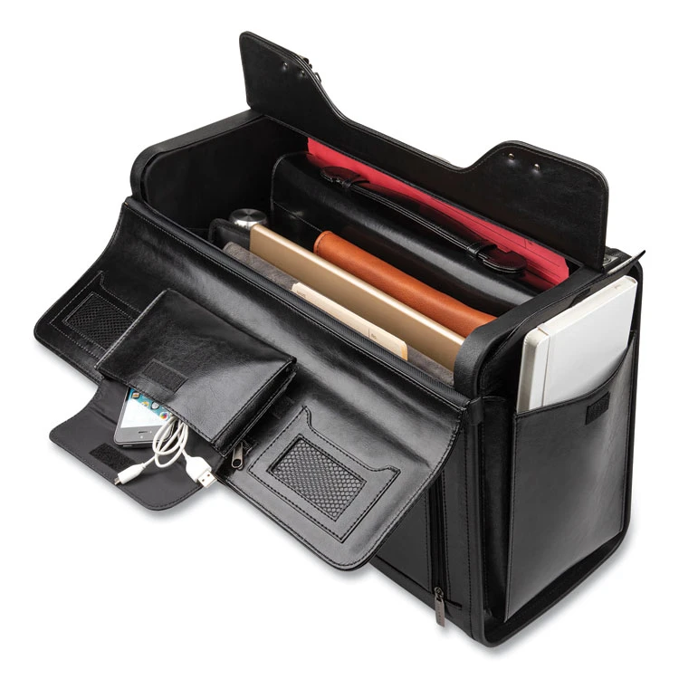 Catalog Case On Wheels, Fits Devices Up To 17.3″, Leather, 19 X 9 X 15.5, Black