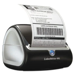 Shipping is easy with the high-output LabelWriter® 4XL direct thermal label printer. This label maker prints large formats up to 4″, including standard postage (starter roll included) and many other sizes for the home and office. Features Address Fixer™ which automatically proofreads and corrects addresses from the USPS database. With a rate of 53 labels per minute, it’s designed for high volume. Direct thermal label makers don’t require ink or toner and produce a clean matte finish, and the 300 dpi resolution is perfect for both text and barcodes. This label printer is compatible with PC and Mac® and allows you to print USPS®-approved postage right from your desk.