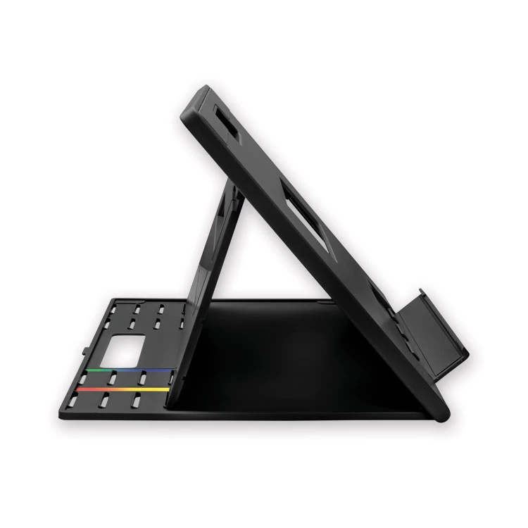 SmartFit® System simplifies finding your personal comfort setting. Just find your color, and dial in your ideal height and tilt-angle setting (up to 50°). The greater the angle, the more you increase air circulation to dissipate heat and keep the laptop cooler, which eases strain on the battery and internal components. Padded inserts provide non-slip stability for any compatible laptop, keeping it firmly and safely in place while you work. Designed to quickly and easily fold flat, so it saves space in your bag when you’re traveling on long or short trips.