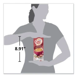 - Dispenser box of liquid creamer singles keeps the counter clean and organized.