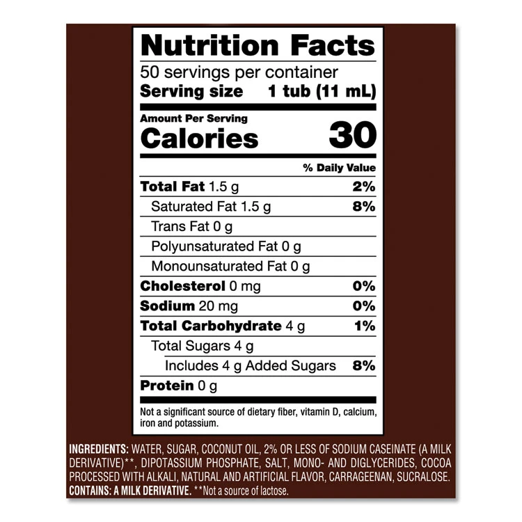 Liquid Coffee Creamer, Snickers, 0.38 Oz Mini Cups, 50 Cups/Box