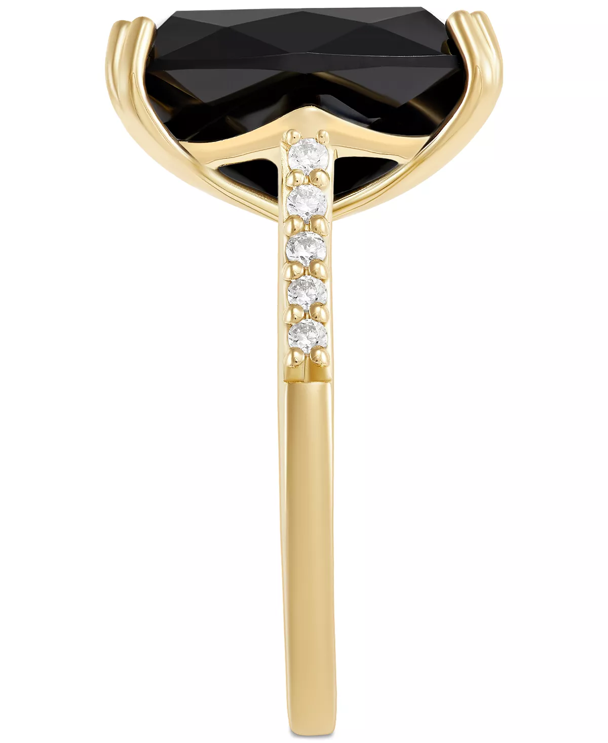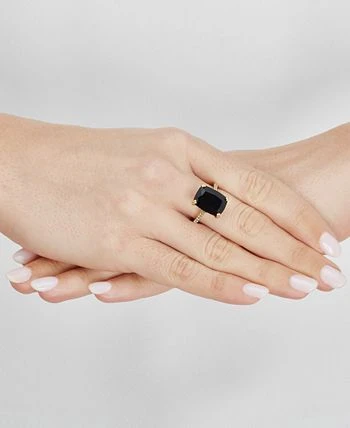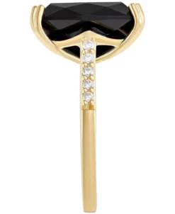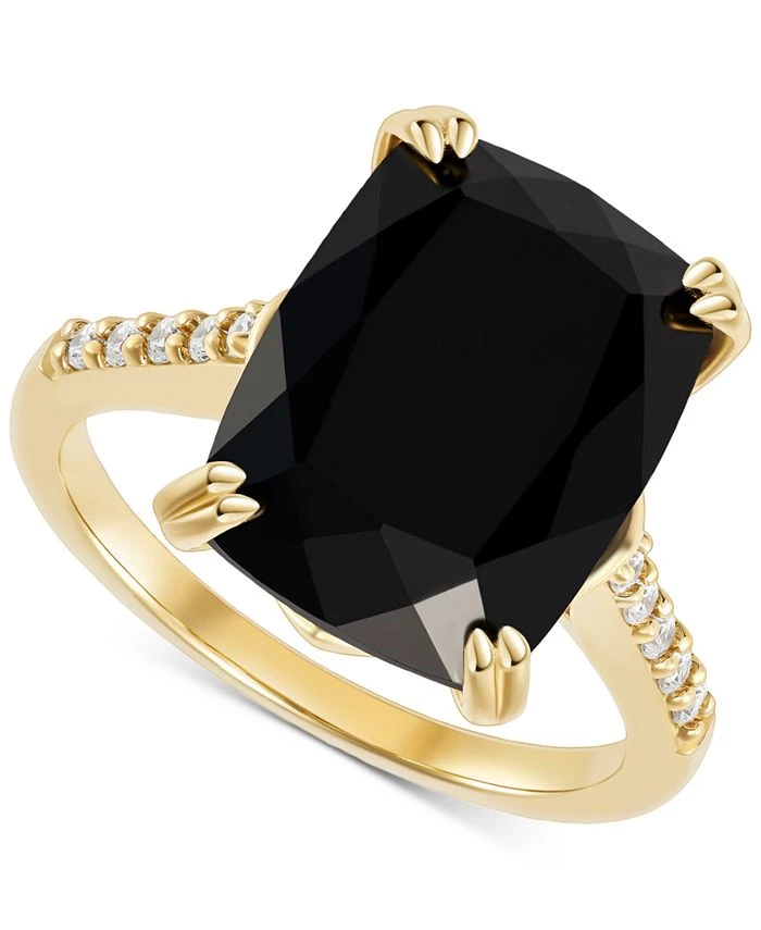 A dramatic cushion-shape onyx is enhanced with the brilliant sparkle of cubic zirconia in this fashion-forward statement ring set in 14k gold-plated sterling silver.