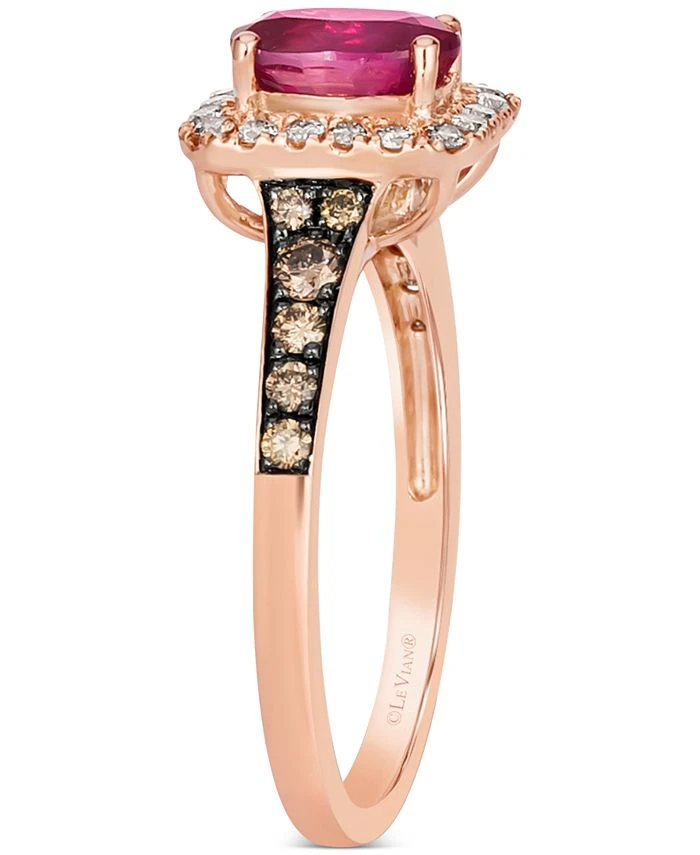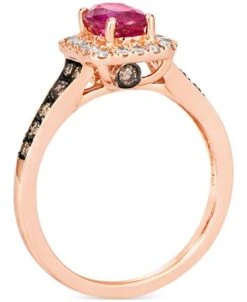 A beautiful Passion Ruby⢠Le Vian ring, is framed with Nude Diamondsā¢, with Chocolate DiamondsĀ® along the rose gold shank.