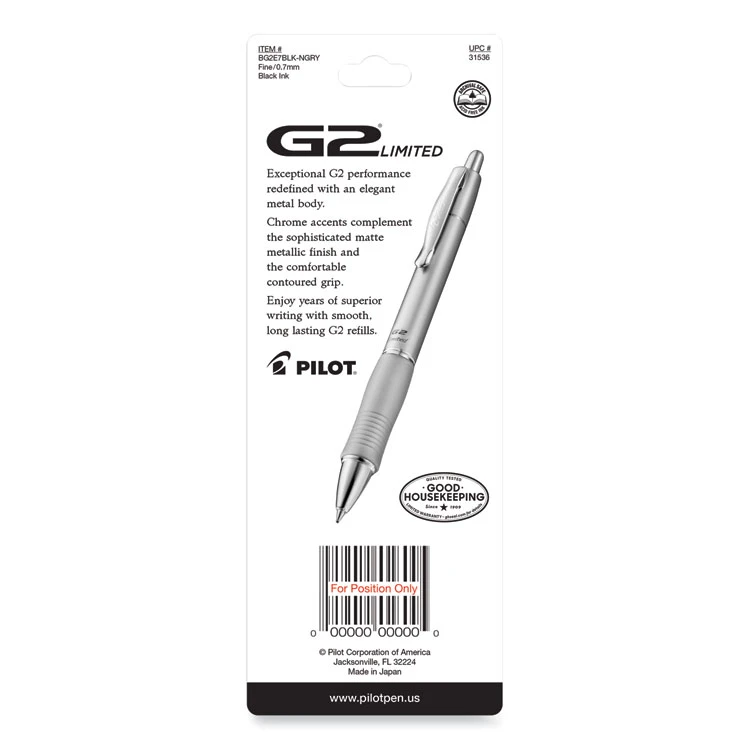 Immaculately finished, sophisticated metal barrel gives this pen a stylish look and feel. G2 gel ink provides smooth, skip-free writing. Ribbed cushioned grip significantly enhances writing comfort. Rich detailing makes it a stylish everyday pen or a fashionable gift. Luxurious look and feel.
