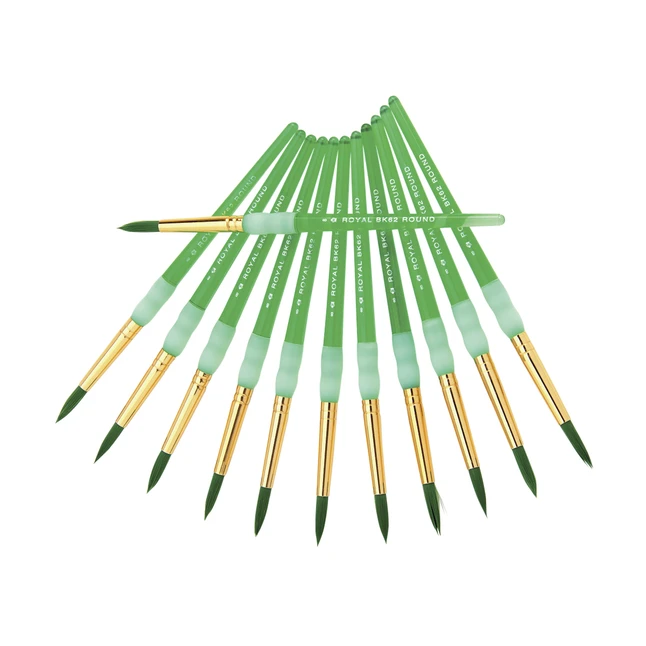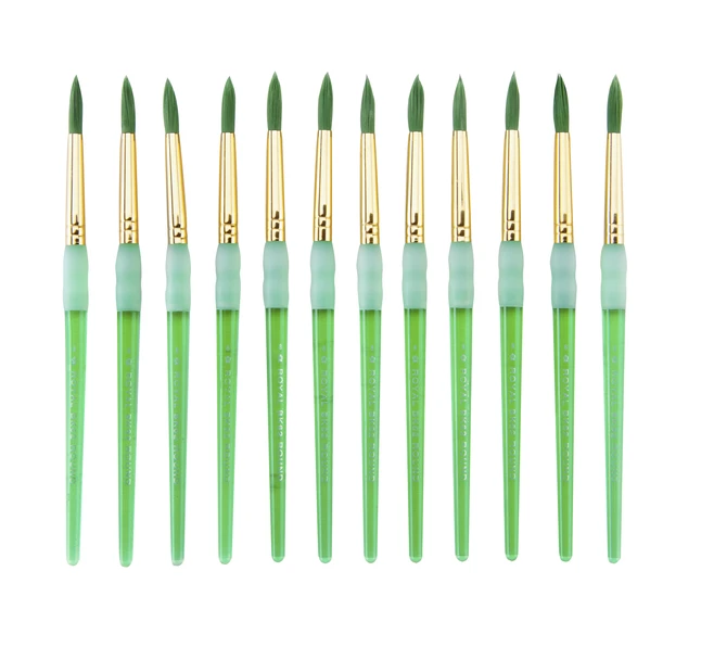 Sax Optimum Golden Synthetic Taklon Long Handle Paint Brushes, Round, Size 1, Pack Of 6