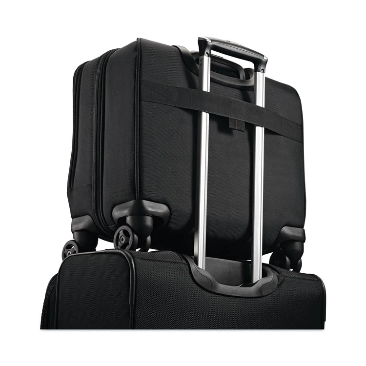 Samsonite Xenon 3 Spinner Mobile Office accommodates laptops up to 15.6” and includes a designated pocket for tablets/iPads. Four multi-directional spinner wheels for easy mobility.