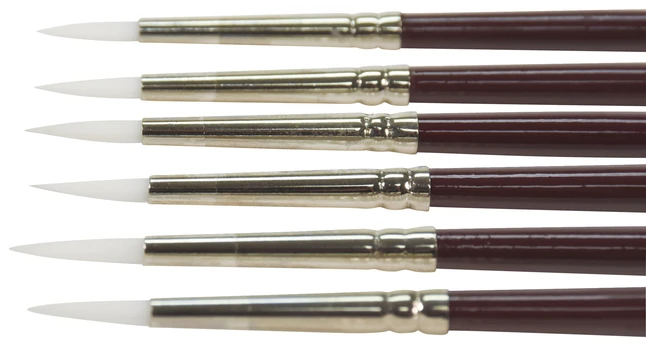 Sax Optimum White Synthetic Taklon Paint Brushes, Short Handle, Round, Size 1, Pack Of 6