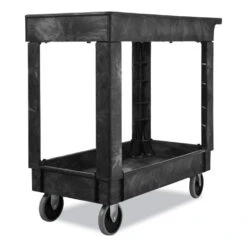 Service/Utility Carts, Plastic, 2 Shelves, 500 Lb Capacity, 34.13″ X 17.38″ X 32.38″, Black